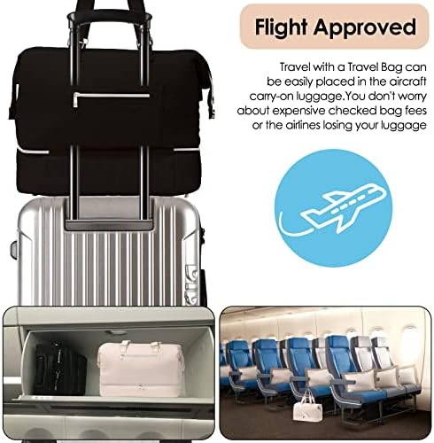 CARRY ON BAGS FOR AIRPLANES: GOLDTIMO Women’s Duffle Bag Meets International Carry-On Requirements (17x8x16in), Perfect for Air Travel. Fits Overhead and Under Seat as Personal Item. Integrated Trolley Sleeve for Easy Airport Transport. Ideal for Overnight Weekend Travel, Personal or Business.