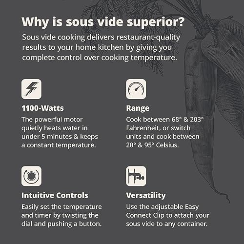 An Intuitive Device: Sous vide is a breeze. Just stick it in a water bath, set your desired temperature, add all your ingredients to a bag, dip it in, and you’re in business! Like a little jacuzzi for your food.