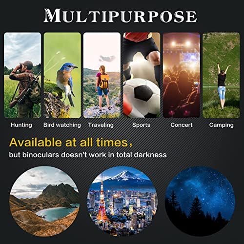 【Professional Optics】 Aspheric multi-layer coated optics and professional BAK4 prism system provide 99.8% light transmission to the telescope, ensuring quality image color and ample brightness during observation. Our binoculars also allows you get clear view in low light environment( but not for completely darkness) and offers you amazing viewing.