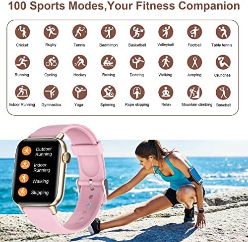 【100+ Sports Mode & Health Monitoring】Smart watch fitness has 100+ different sports modes like (Walking, Running, Cycling, Skipping, Badminton, yoga, Basketball, Football etc.), which makes your training more accurate. This smart watches for women includes more practical functions, and convenient tools like music & camera control, brightness adjustment, weather display, menstrual cycle reminder etc.