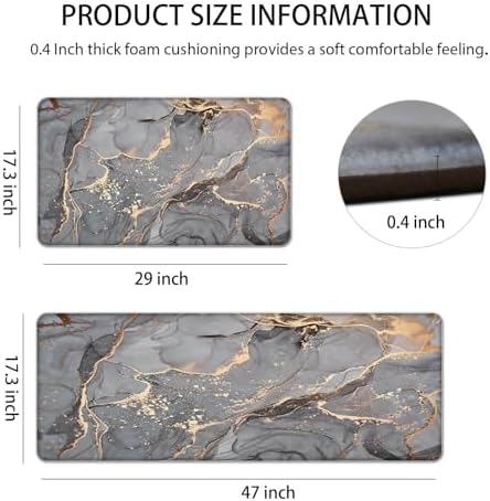 VERSATILITY: With dimensions of 17.3” x 29” and 17.3” x 47”, our memory foam kitchen mats are the perfect size for most kitchen spaces. The 0.4-inch thickness provides just the right amount of cushioning without being too bulky.
