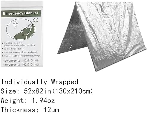 High-quality Material: The camping emergency blankets is made with Mylar material. Mylar has insulating properties and can reflect/retain 90% of human body heat. The emergency survival mylar thermal blankets ensuring reliable protection in harsh outdoor environments. Multi-functional Design: This thermal blanket can be used as a rainproof cover or sunshade, as well as an emergency mattress, ground mat, or moisture barrier, meeting the diverse needs of outdoor activities. Lightweight and Portable:This mylar blankets is lightweight and portable. It can be easily packed into a backpack or suitcase for convenient transportation. FULL BODY PROTECTION: Each 82″” x 52″” emergency thermal blanket for camping is bigger than normal safety camping emergency blankets. QUALITY GUARANTEE: Get emergency medical blanket with confidence. Disposable emergency blanket thermal blankets survival, strong enough to be reuse rescue blanket. Emergency gear winter emergency kit for bug out bag survival kit as first aid blanket