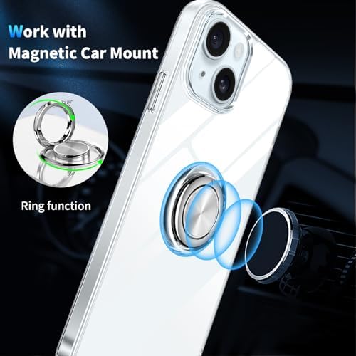 ♥【Adjustable Ring Holder】The mobile phone case with a 360°rotating ring bracket is more convenient to carry and can help prevent the mobile phone from accidentally sliding off and provides your phone with multiple-viewing angles for watching video and movie as a kickstand.There is a piece of hidden iron inside the center of the holder ring, which allows to put it on a magnet car mount during driving. Noted: Due to the ring holder stand, please remove your phone case when wireless charging.