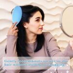 《Remove Knots and Tangles》: Our hair brush for women gently loosens knots on wet or dry hair without pulling or snagging. The teeth of the comb are soft, with rounded points, no puncture on the scalp, easy to enter the hair, and convenient for combing various curly hair styles. Very good to massage the scalp to enjoy.