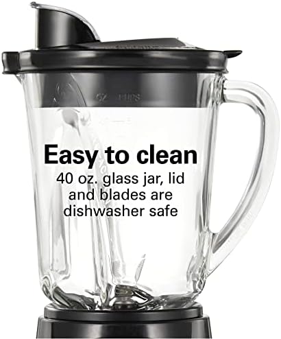 EASY TO CLEAN WITH DISHWASHER SAFE GLASS JAR, LID AND BLADES: Blending multiple servings is easy with the glass jar that holds 40 ounces; The jar, lid and removable blades on the blender are all dishwasher safe