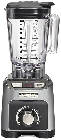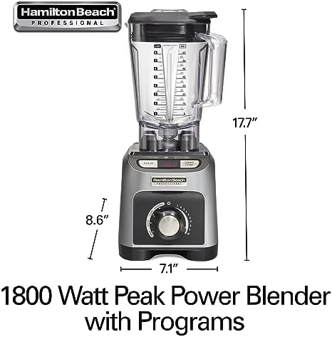 Bring commercial quality performance to your kitchen countertop with the Hamilton Beach professional 1800-watt blender with 64 oz BPA-free jar & 4 programs.
