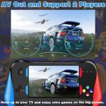 Hook Up to TV, Support 2 Players: The package includes a gamepad that supports two players playing at the same time, allowing you to enjoy the fun of two-player games. Connect this handheld game console to your TV with an AV cable for a larger, more comfortable view of the game. Enjoy an immersive gaming experience with family and friends on the big screen and experience the fun of retro games.