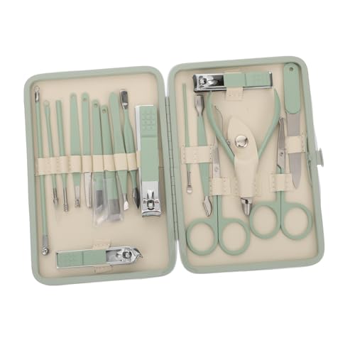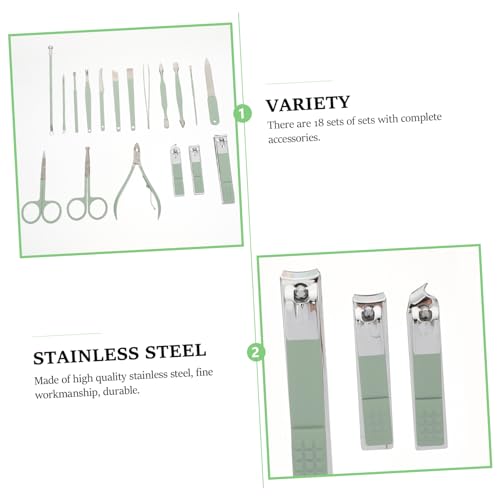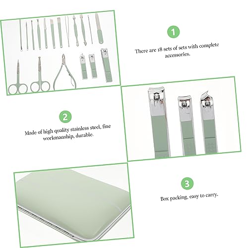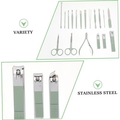 HAPINARY 18pcs Green Manicure Set Nail Clipper Fingernail Nail Grooming Tools Cuticle Remover Pusher Kit Nail Care Tools Manicure Pedicure Cutter Miss Portable Pedicure File Stainless Steel