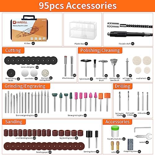 HARDELL Rotary Tool Kit, 130w Rotary Tool with 95 Pcs Accessories,Flex Shaft, 6 Variable Speed for Crafting Projects and DIY Creations,Cutting,Polishing,Sanding,Curving,Drilling