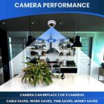 1 Camera can replace 2 or 3 cameras,cable saved,work saved,time saved,money saved. 180 degree full room monitor,everything is under control.