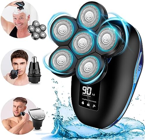 🌊【Perfect Gift Choose-Electric Head Razor】Classy metallic, an intelligent digital display, and a one-key power-on, upgraded 6 in 1 electric head shaver for men gives you a different visual experience and is the perfect gift choice. Only one set can perfectly meet the needs of any mens electric head shaver! If you encounter any problems during use, our professional customer service team will do their best to solve your problem and satisfy you.