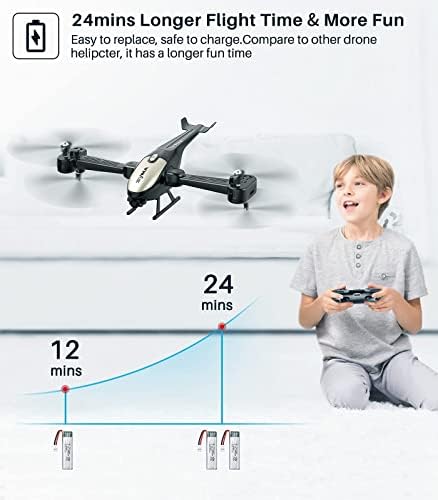 Perfect for Beginners & kids: The foldable helicopter is suit for Indoor Outdoor flight, plus 2.4Ghz Remote Control system supports multiple players control this remote control helicopter at the same time. 2 intelligent batteries for up to 24 minutes ultra-long flight time. Ideal gift for kids and adults.