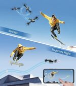 360° Flips and Trajectory Flight: One key 360° Rolls perform an impressive flip to make fly more attractive; Drawing a flight course on your smartphone, the drone will fly accordingly, add funs to your flight. While hovering, you can even push down the left joystick and push the right joystick to adjust the direction left/right/forward/backward to fly more stably.