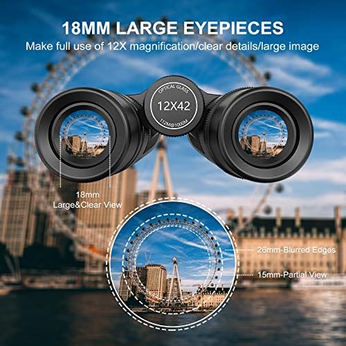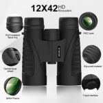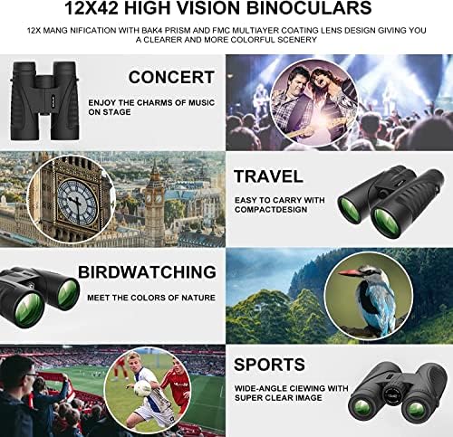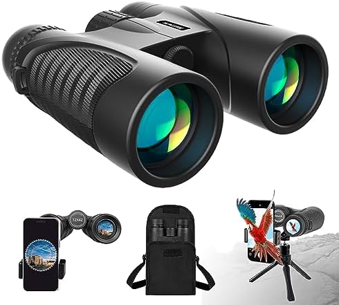 【Super Bright and Clear View】 These High Powered Binoculars with multi-layer coated aspheric lenses provide superior light transmission of 99.98% and minimal distortion, better image brightness, contrast, and quality. The Bak-4 prism of high powered binoculars has a perfectly round exit pupil. Not only that, these High Powered Binoculars provide bright, clear, and sharp viewing even in low light night vision.
