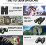 【Portable, Fog proof, Waterproof Binoculars】 High Powered Binoculars rubber finish provides shock resistance and a firm, comfortable grip for durability, Waterproof, drop and fog resistant. Also, binoculars’ threaded focus knob increases friction between the knob and your finger, allowing you to focus faster and more accurately while observing a constantly moving object. These details make it better to use these High Power Binoculars when you are doing outdoor activities.