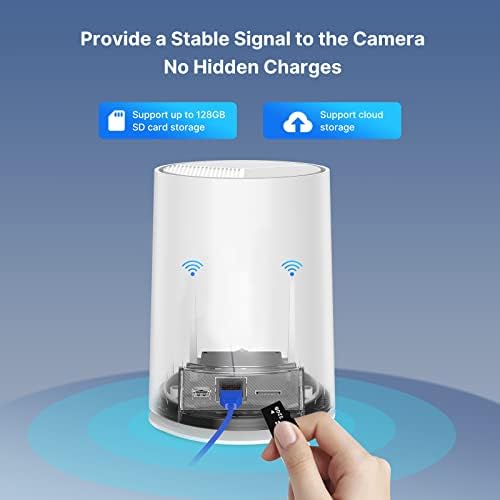 【4MP HD 160° Wide Angle & Easy to Set Up】 The camera provide 4MP (HD 2560*1440P) clear images and 160°wide angle view.No need to connect camera with power supply or video cable .Just connect the base station with power supply and networkcable,scan the QR code on the base station,then you can see the cameras on your phone.