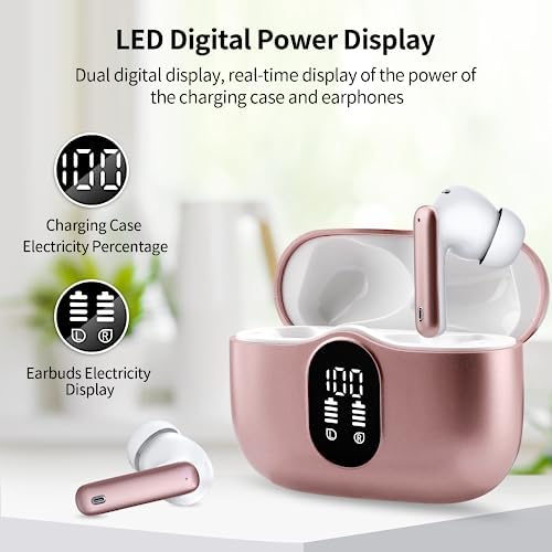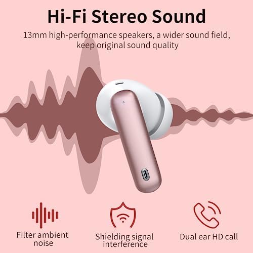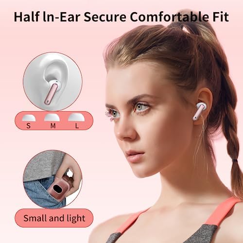 【3 Sizes Earbuds Cushions and Comfortable Fit Design】The half in-ear design with an angle of 108 degrees, which makes the earbuds comfortable and stable to wear. 3 sizes earbuds cushions available for different ears, and the ergonomic streamlined design provides comfort, so you can listen to music undisturbed during exercise, working, running, walking, traveling.