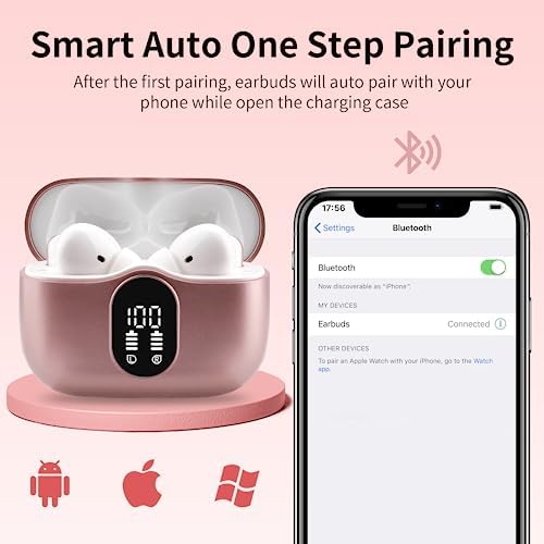 【Smart Auto-Pairing and Charge Anywhere】Just take out the Bluetooth earphones from charging case and they will automatically connect the paired device(After the fist pairing). 6-8 hours Music Playtime, 4 hours Talk time, totally playtime up to 30+ hours using with charging case. Note: When pairing the earbuds with a new device, please check if it is being used with another device connected, otherwise, you need to disconnect them first, and then pair the new device.
