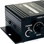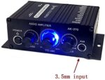 Adjustable: This mini stereo amplifier output sound quality clean, with volume, treble, bass adjustment, support 3.5mm sound input.