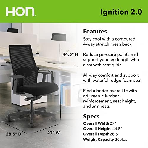 Stay cool with a contoured 4-way stretch performance mesh back. Breathable and designed to increase air flow, mesh is also 2x stronger than a traditional mesh office chair. Contoured foam seat cushion with premium fabric features a waterfall-edge seat.