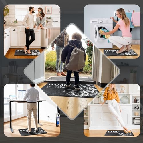 Non-Slip Kitchen Rugs- The kitchen runner are designed with advanced beveled edge and non-slip backing helpful to protect you from slippage and tripping. You can stand on it barefoot or with shoes on. Kitchen floor mat can be used on a variety of surfaces (wood, tile, ceramic, marble, etc.). [WARNING!!!] Area under the mat should be clean, flat, and dry before placing the foam mat. Water or dust under mat may cause slippage.