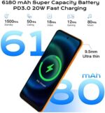 The HOTWAV Note 12 cellphone has a 6180 mAh battery, which can watch videos, listen to music and play games for several hours continuously. It can provide 1500 hours of standby time, 80 hours of music time, 50 hours of talk time, 18 hours of video, 12 hours of game play. It also supports 20W fast charging, so you can play for a long time without worrying about running out of power.