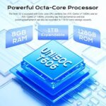 🎖️【8GB RAM + 128GB ROM + 1TB Expandable】HOTWAV Note 12 dual sim unlocked cell phone has 8GB RAM which can offer blazing-fast read and write speeds for an extremely smooth multitasking and gaming experience.128GB ROM is enough to install popular apps and games.It also can be expanded up to 1TB for extra storage capacity with a TF card,you can download more movies, pictures and whatever you want.