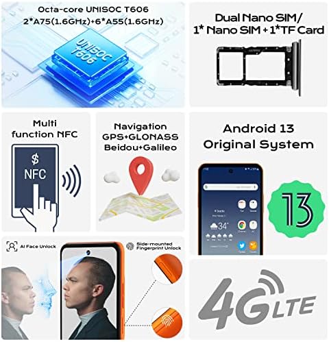 🎖️【Dual-Nano-SIM+ NFC + GPS + 4G LTE】With 2 cards slot,the unlocked android 13 phone supports dual Nano SIM Cards or 1 Nano SIM Card + 1 SD Card.Convenient NFC function,whether it is payment,unlocking or riding a car,you only need to take out your mobile phone and touch it lightly.With the GPS+GLONASS+Beidou+Galileo,no matter where you go,the powerful positioning function of the Note 12 can quickly help you find the correct direction.