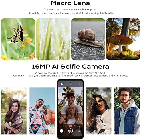 🎖️【48MP + 16MP + 2MP Camera】HOTWAV Note 12 unlocked cell phone featuring a 48 MP camera that can take realistic and clear photos.Clarity and color are further enhanced by incorporating artificial intelligence algorithms to give you a truly immersive experience.The 2MP macro lens can shoot every subtle objects,with it you can easily explore more wonderful and shocking details in life.You can always be confident in front of the camera with the 16MP portrait camera which can make you clearer and smarter.