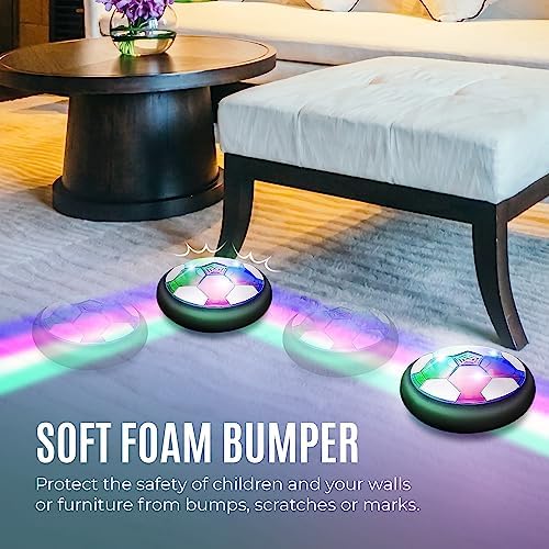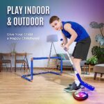 Built-in LED Light: The Soccer set goals can be easily assembled and disassembled. It is simple and convenient. The hover hockey ball toy set is equipped with colorful LED lights, which bloom bright color lights in the dark, kids can play indoor, outdoor and kick after the nightfall and turns soccer games which bring more fun to the kids, making your night game wonderful!