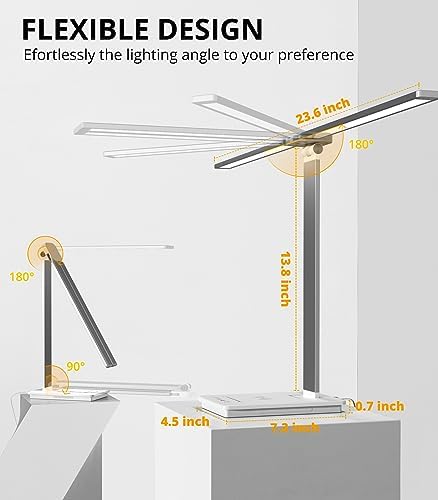 💡【Desk Light for Home Office】 With base measured 7.3” long by 4.6” wide, this desk lamp doesn’t take up much space. But its dual arm is 23.6” when extended to 180°, providing great coverage so that you can see everything across the desk. Besides, the Wireless Charger Lamp is built to last for nearly 50,000 hours, and its ABS base and aluminum alloy pole are durable, no worry about it wearing out over time. Overall, this aesthetic desk lamp would be an excellent study lamp or office lamp.