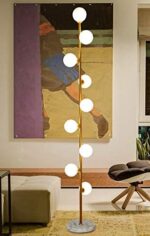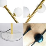 On/off switch in line,standard American plug;Need to be assembled and easy to install;The base is designed with a weighted marble so it will not easily tip,because base is made by original marble,the color of the marble may have some difference due to different lots.