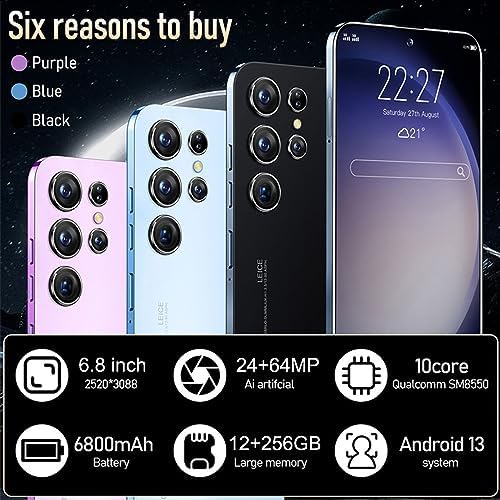 【72MP +32MP Camera & Lightwight】The unlocked H23 Ultra phone is equipped with a professional-grade camera system, 72MP rear camera and 8MP macro lens. A 32MP front-facing camera makes your selfies stand out. The H23 Ultra Android phone is only 8.9 mm thick and weighs 210 grams, making it slim and light, making it very easy to hold.