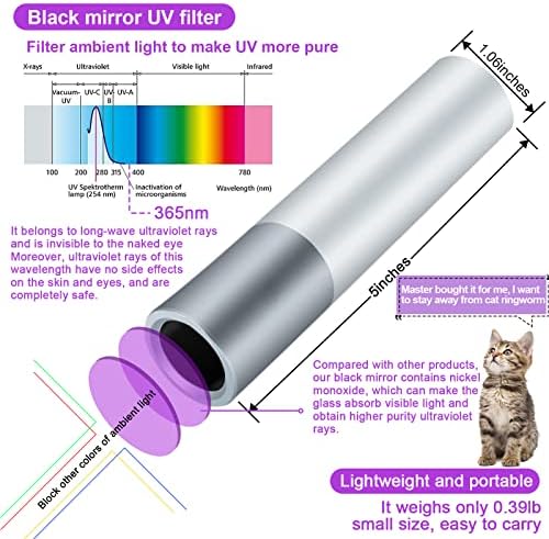 😸Multi-function: In addition to detecting ringworm in cats, this product can also be used for quick-drying nail polish, resin curing, skin condition analysis, luminous product light source supplement, fluorescent agent detection, anti-counterfeiting label detection, food mold detection, etc.