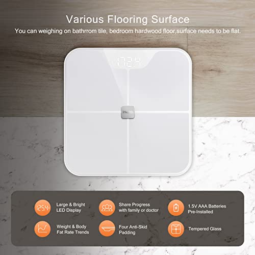 Multi-user Friendly – This digital scale lets you share a scale with your family. Automatically identify up to 8 users and access their personal weight history. The scale for body weight automatically recognizes who’s who after syncing with your smartphone.
