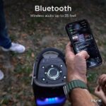 𝑳𝑬𝑫 𝑳𝑰𝑮𝑯𝑻𝑰𝑵𝑮 𝑬𝑭𝑭𝑬𝑪𝑻𝑺: Dazzle your guests with 6 different modes of multi-color RGB lighting effects built right into the front of the speaker, so you can create the perfect ambiance for any occasion. Whether you’re hosting a party, having a BBQ, or just want to set the mood for a romantic dinner, this speaker has you covered. The LED lighting effects will sync with the music, making the experience even more immersive.