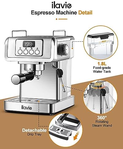 ☕Milk Frother System: ILAVIE coffee espresso machine with powerful 1350 watts, and the 360-degree rotating steam wand creates thousands of tiny bubbles in the air, giving you the perfect velvety texture in your milk, delivering barista-quality silky micro-foam that enhances the flavor of the coffee.