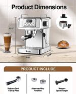 ☕User-Friendly Design: This espresso coffee machine is easy to use, with intuitive controls that make it easy to select a single cup, double cup, or steam function at a touch of a button for the dose you want each time and you can see the temperature and time at any time.