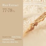 🌾It contains 77.78% of Goami rice extract and 4 kinds of vegetable-originated extract complex to soothe flaky dead skin cells by forming a moisture protective layer. Sirtuin from rice protects skin damage from sun rays and helps to relieve skin stress.