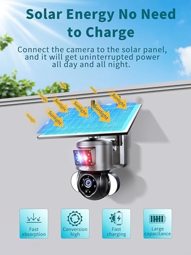 [🔋𝙎𝙤𝙡𝙖𝙧 𝙋𝙤𝙬𝙚𝙧 𝙬𝙞𝙩𝙝 𝟭𝟮𝟬𝟬𝟬𝙢𝘼𝙝 𝘽𝙪𝙞𝙡𝙩-𝙞𝙣 𝘽𝙖𝙩𝙩𝙚𝙧𝙮] IMGCAP surveillance camera has a built-in 12000mAh ultra large capacity battery, equipped with sunlight high conversion technology solar panels, so that it can continuously operate electricity without extra charging and cables for 365 days. Enjoy uninterrupted security surveillance without any hassle. You can set the floodloght to automatically turn on at night when motion is detected.