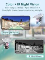 [🌗𝟮𝙆 𝟰𝙈𝙋 𝙐𝙡𝙩𝙧𝙖 𝙃𝘿 𝘾𝙤𝙡𝙤𝙧 𝙉𝙞𝙜𝙝𝙩] Our outdoor security camera adopts an upgraded 1440P & 4X digital zoom optical camera, which not only has good picture quality during the day but also can capture more details in low light or dark light, providing clear graphics and video, typical 2 high power floodlight and built-in infrared can better help you take excellent color pictures and video at night. The color night vision range is up to 33FT, and the IR vision range is up to 66FT.