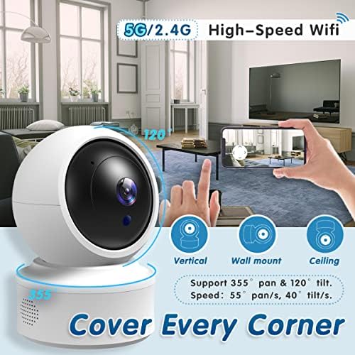 【Enhanced Night Vision & 360° Coverage】With 4pcs 940nm infrared lights, Indoor security camera displays a crystal visible image in the night up to 40ft, Pan/Tilt 360° horizontally or tilt it 115° vertically to get a clear view of the whole room. Using built-in microphone & speaker to communicate with your family member at anywhere.