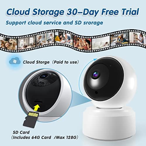 【Optional Cloud & 24/7 SD Card Storage】Using security camera indoor wireless to save the alert video on SD card (64G card is inside the camera) or Paid to use cloud storage to ensure your data safe, and enable 24/7 continuous recording on SD card storage to avoid the risk of losing anything important. Monystalia.