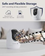 【2K Live Steam from Anywhere】Home security cameras with super clear 2K FHD provide high-quality video right in the palm of your hand. Swipe up, down, left, and right on your phone to rotate and set your baby camera’s point of view in real-time. Pet camera with 4 pcs IR lights; You can see every move of your baby or pet at night.