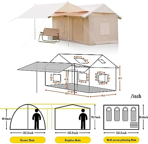 【Easy to Assemble】It comes with a manual inflatable pump with its own pressure limiting valve to ensure your safety. You can finish assembling the luxury tent for camping in 10 minutes. Package includes: 1 carry bag; 1 pole bag; 1 steel nails bag; 1 tent body; 2 refined poles; 15 steel nails; 1 hand pump, 1 repair kit.