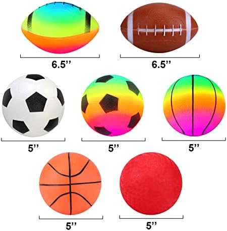 Our playground ball set includes 7 pcs different style balls and the size is 5 inches diameter. The size is more suitable for kids to learn sprots at a young age. The ball game improves kids’ hand-eye coordination and communication skills and also promote a healthy and active lifestyle. We also make the balls in bright colors and it’s beautiful and attractive, which can attract kids’ interest and attention, making them more likely to go out and play the balls.