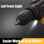 ✅ ◆【Compact & Lightweight & Front LED】: The Inspiritech BPD9220 cordless drill weighs just under 2.43lbs with the battery, so it is easy for anyone to use and minimizes user fatigue. The ergonomically designed handle ensures that you can operate this drill comfortably and safely. A built-in LED light that activates when triggering the drill makes it easier to work in dark or confined workspaces.