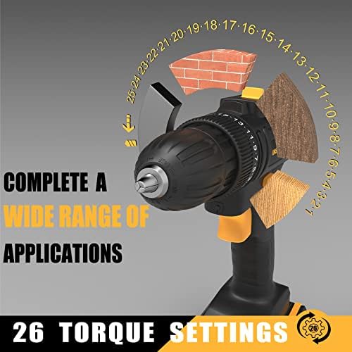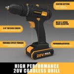 Home Tools & Home improvement Power Tools INSPIRITECH 20V Cordless Drill with 2 Batteries, Charger and 13” Tool Bag, 3/8 Inch Chuck, Variable Speed, 25+1 Torque Setting with LED Work Light and Accessories