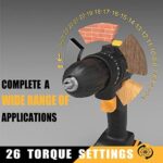 ✅ ◆【Keyless Chuck and Reverse Control】: The 3/8‘‘ chuck is a perfect size to enable you to use bit heads of various diameters from 1/32 inch to 3/8 inch (0.8mm – 10mm). The keyless chuck ensures high concentricity and allows you to hold and turn to replace or tighten bits by hand conveniently. You can screw/replace/ remove bits easily with the Forward / Reverse switch