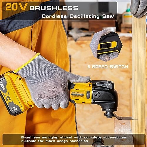 ▶【6 Speed & Brushless Motor】 This electric oscillating multi-tool has 6-speed position with 8000-20,500 OPM, that the speed can be easily customized to your needs while working. The 20V brushless motor can get the job done easily ingreater flexibility in tight spaces, job sites, and outdoor environments.